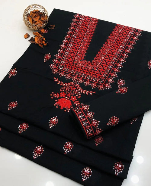 2 pcs women's unstitched Embroidered suit